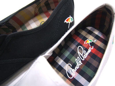 Arnold Palmer/アーノルド パーマー キャンバススニーカー/スリップオン タイプ 素材:キャンバスコットン カラー:オフホワイト(内側はチェック柄) シンプルなデザインで様々なスタイルに 合わせやすいスリップオンタイプ♪