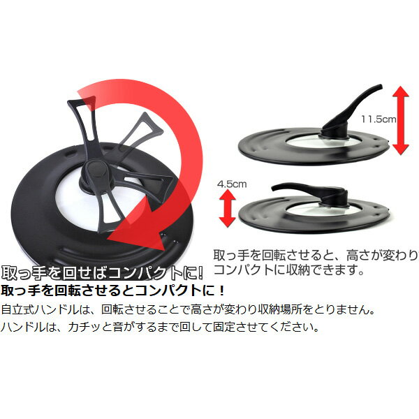 鍋蓋 24〜29cm用 ガラス窓付き 取っ手付き たためるスタンドハンドル ( 鍋ふた フライパンカバー フタ 窓つき 鍋用 調理器具 鍋フタ ) 【4500円以上送料無料】