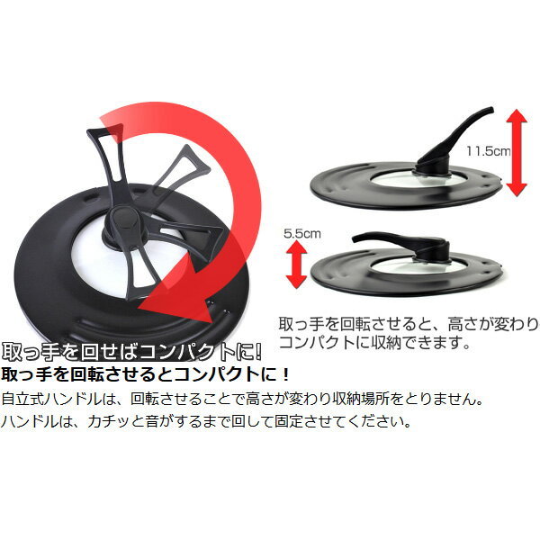 取っ手を回転させるとコンパクトに!自立式ハンドルは、回転させることで高さが変わり収納場所をとりません。