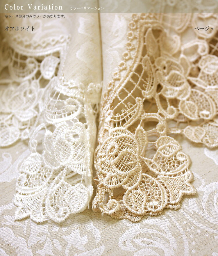 デザインコンセプト リネンミックスのようなナチュラルな雰囲気のある基布に、ダマスク模様を浮かび上がらせたジャカード織生地にローズモチーフのギュピールレースを組み合わせ、 アンティークのような趣きのインテリアです。