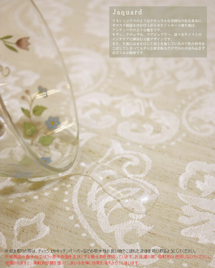 テーブルクロス 約90x90cm 撥水加工 ダマスク柄 ジャカード織 & ローズ モチーフ ギュピール レース 【ゆうパケット選択可】